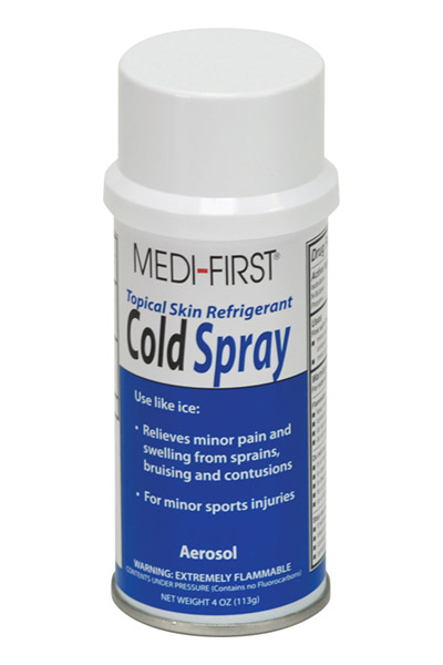 A topical coolant used to cool the skin, reducing swelling and pain. Active ingredients: Isobutane, N-Butane, Propane 23017....4oz can |