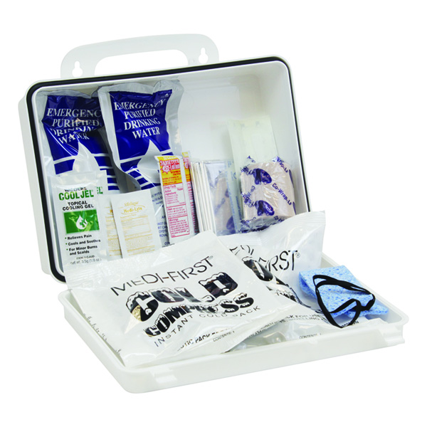 Our heat relief kit is stocked with items to help lower core body temperature and to rehydrate and restore electrolytes lost to excessive perspiration.. 740H1SK....Filled |