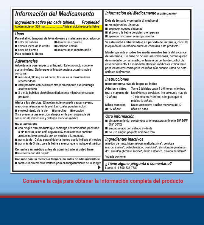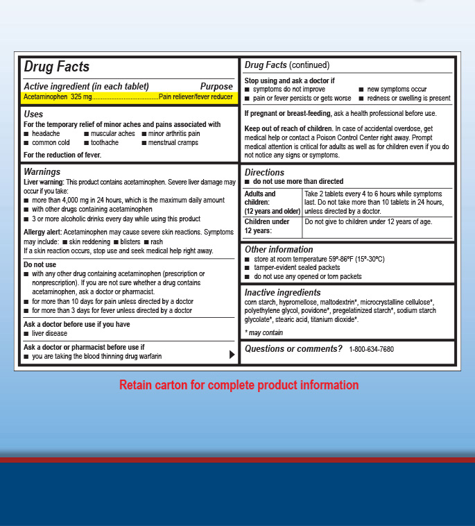 Active ingredient (in each tablet): Acetaminophen 325 mg