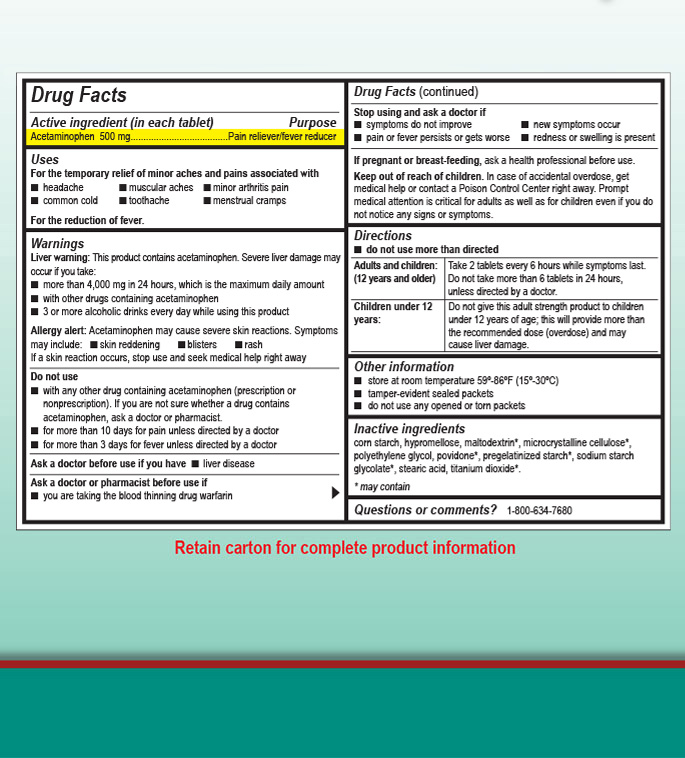 High potency, aspirin-free relief from pain and discomfort associated with colds, arthritis, headache, muscle ache, menstrual cramps and fever