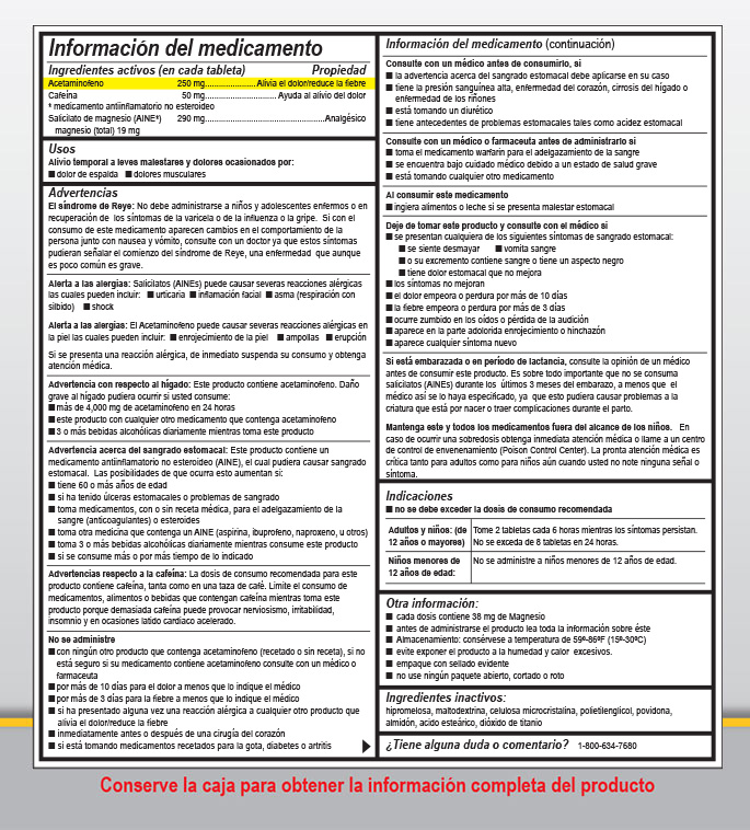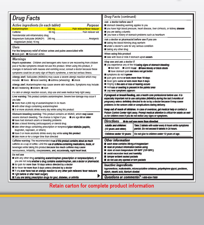 Active ingredient (in each tablet): Acetaminophen 250 mg