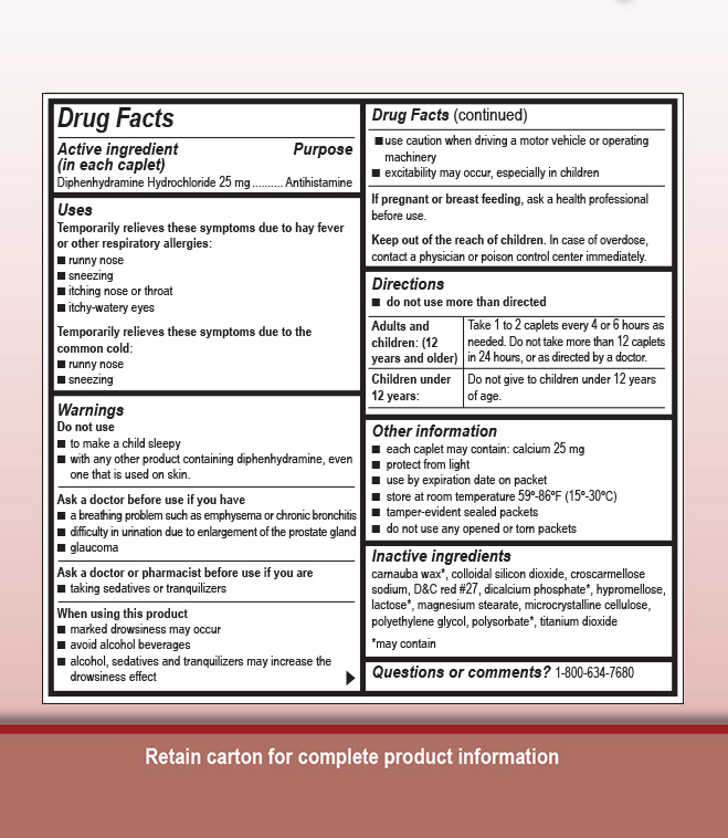 Active ingredient (in each caplet): Diphenhydramine HCl 25 mg