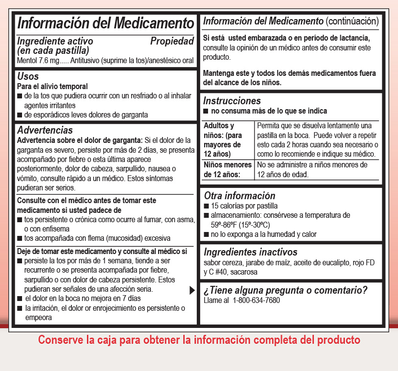 Menthol/eucalyptus vapor action cough drops clear nasal passages and provide temporary relief of minor throat irritation and cough due to colds or inhaled irritants. Pleasant cherry flavor.