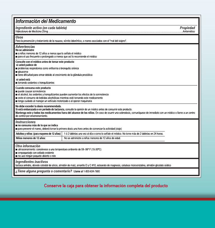Active ingredient (in each tablet): Meclizine Hydrochloride 25 mg