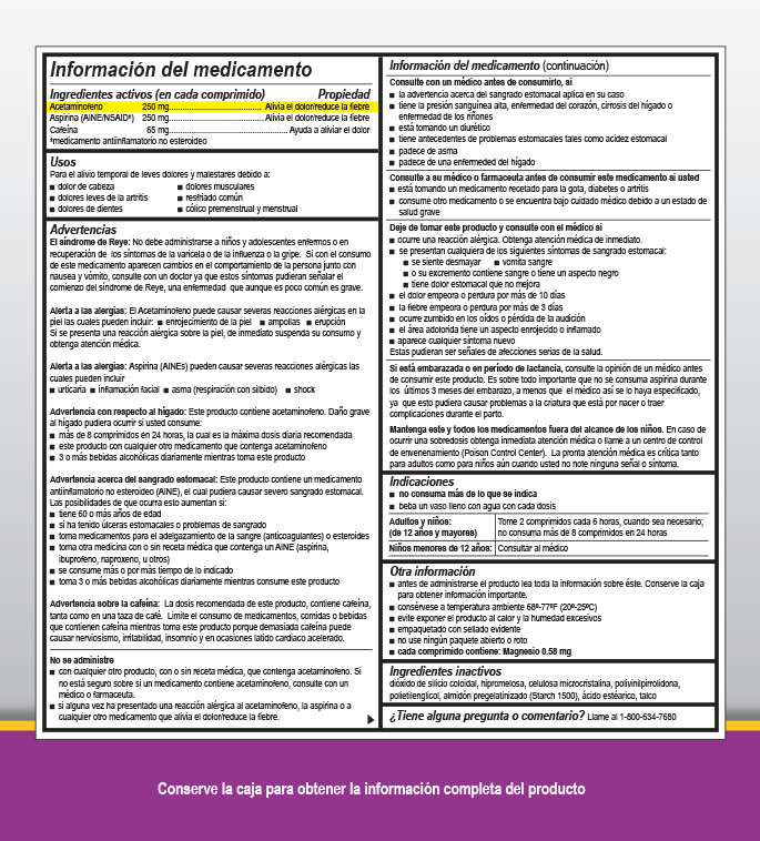 Active ingredient (in each tablet): Aspirin (NSAID*) 250 mg